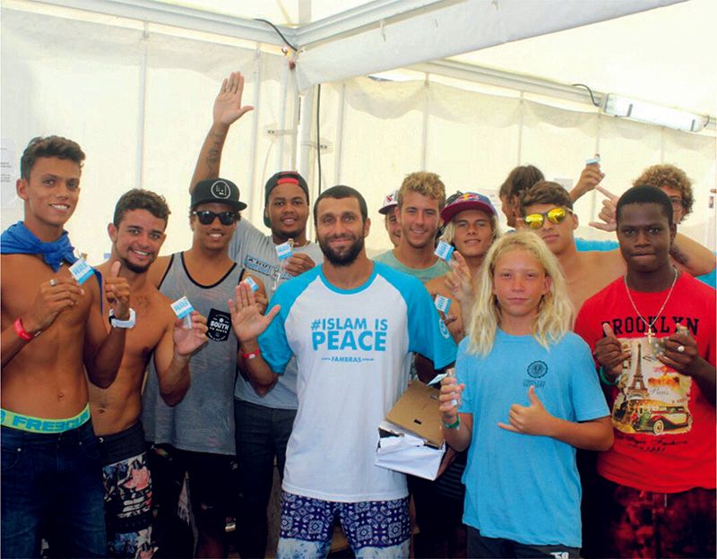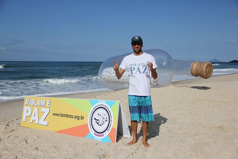 ظهر مشروع رياضي السلام بهدف أخذ رسالة السلام إلى جميع أنحاء العالم. وخلال إنجازه، تتم تعبئة قارورة من حوالي ستة أمتار من قِبل فريقنا في رمال الشواطئ حيث يتنافس رياضي السرف المسلم البرازيلي الوحيد جهاد خضر الذي دخل إلى دوري ركوب الأمواج العالمية والانضمام إلى النخبة العالمية للسرف. ومن ثم يقدم الرياضي للأشخاص المتواجدين على الشواطىء هدية، عبارة عن عدة مصغّرات للزجاجة تحتوي على رسالة مع كلمة " السلام" مكتوبة بعدة لغات